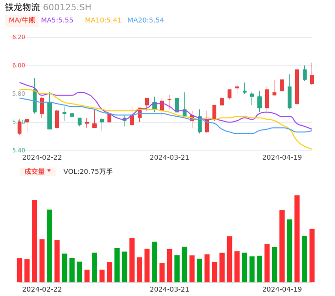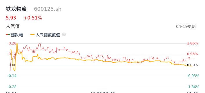 04月19日,铁龙物流收报5.93,股价涨幅0.51%,成交金额1.24亿元,换手率1.59%。