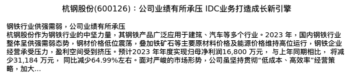 值得注意的是:2024年03月华鑫证券的宝幼琛/任春阳分析师,首次发布关于杭钢股份的研究报告,标题为:杭钢股份(600126):公司业绩有所承压 IDC业务打造成长新引擎。