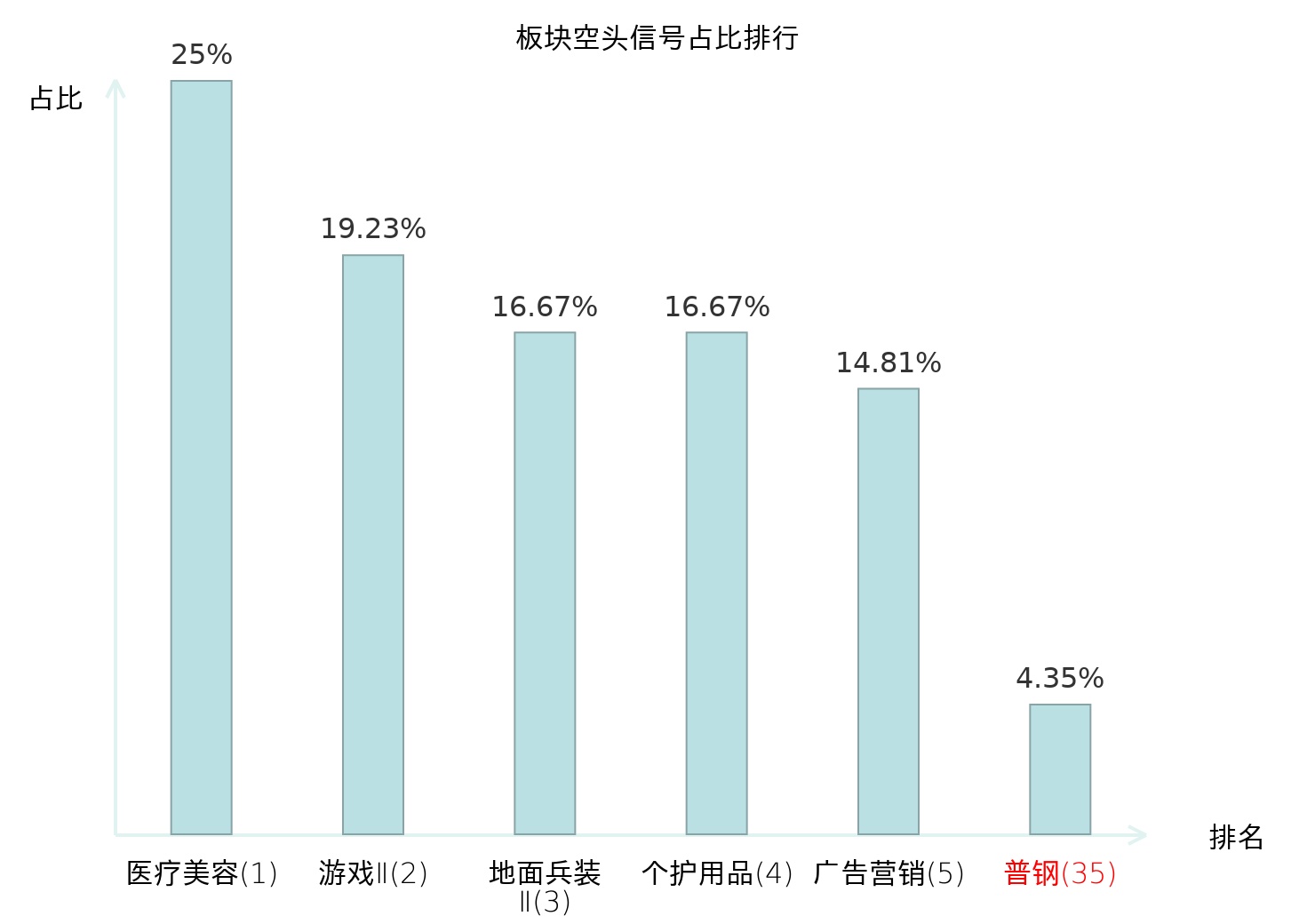 全市场所有行业板块中主力空头信号占比排名中,医疗美容板块位居第一。游戏Ⅱ板块名次提升最快,较昨日上升122位。