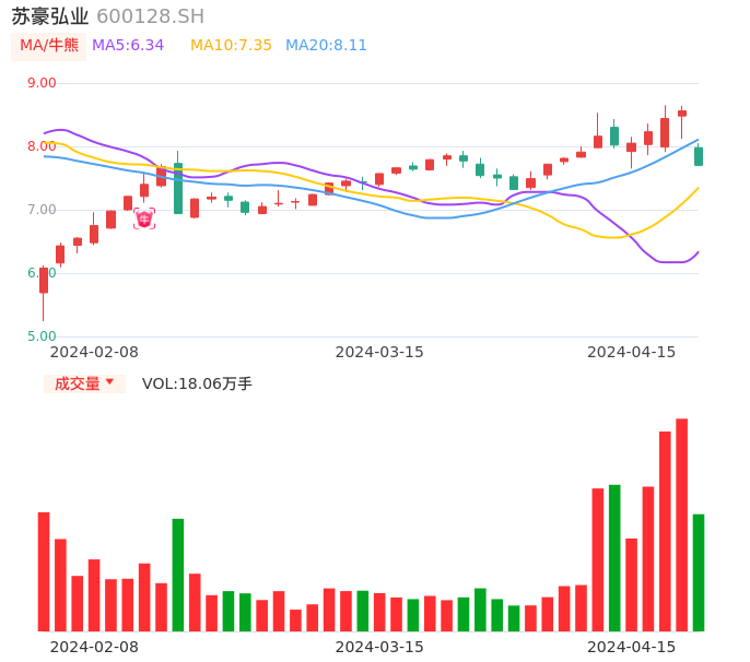04月15日,苏豪弘业收报7.70,股价涨幅-10.05%,成交金额1.40亿元,换手率7.32%。