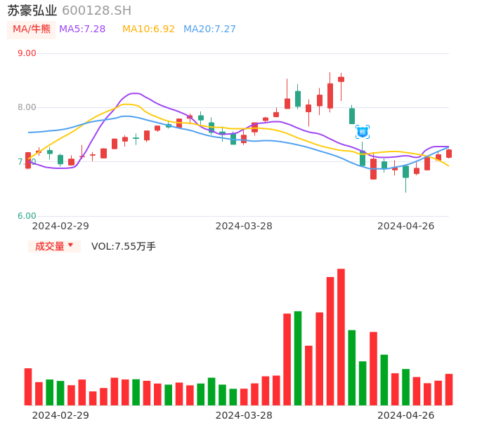 04月26日,苏豪弘业收报7.22,股价涨幅1.26%,成交金额5404.81万元,换手率3.06%。