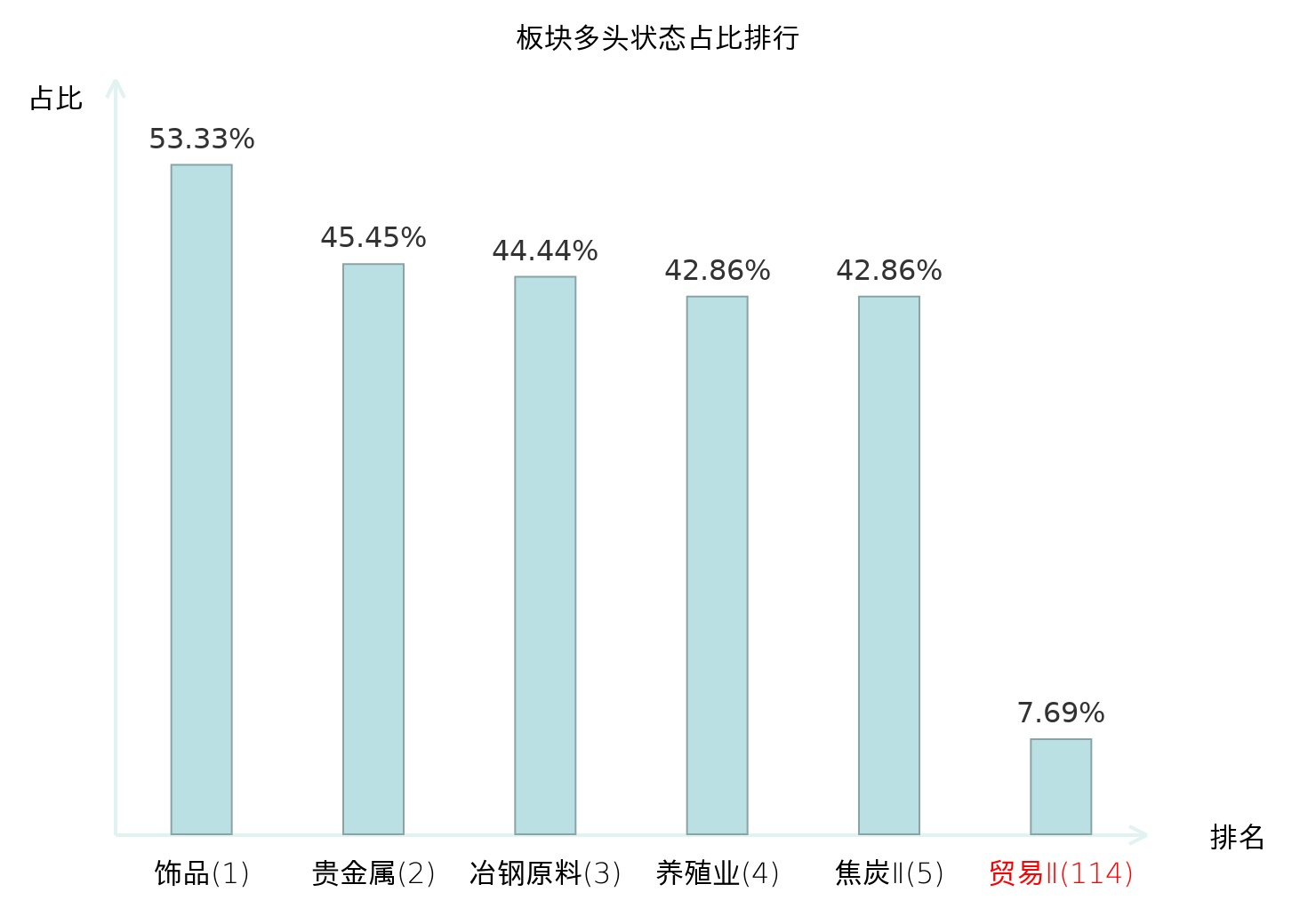 从主力宝信号数据分析,苏豪弘业所属的贸易Ⅱ板块中共有1只股票处于主力多头状态,主力多头状态占比在全行业中排名第114位,较昨日下降17位。这一排名变化表明,主力对贸易Ⅱ板块的整体看多意愿有所减弱,可能反映了市场对该板块短期走势的不确定性。全市场所有行业板块中主力多头状态占比排名中,饰品板块位居第一。非金属材料Ⅱ板块名次提升最快,较昨日上升58位。这些变动揭示了不同行业间主力资金偏好的变化,为投资者理解市场趋势和主力动向提供了重要参考。