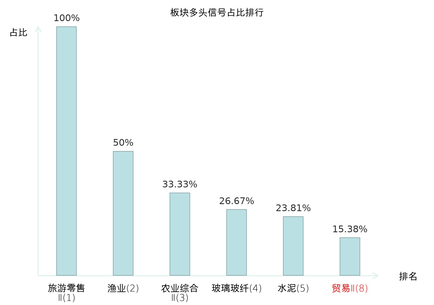 从主力宝信号数据分析,苏豪弘业所属的贸易Ⅱ板块中共有2只股票发出主力多头信号,主力多头信号占比在全行业中排名第8位,较昨日上升了104位。排名的上升表明主力当日买入意愿显著增强,为投资者提供了该板块未来走势的积极信号。全市场所有行业板块中,旅游零售Ⅱ板块的主力多头信号占比最高,位居第一;旅游零售Ⅱ板块的名次提升最快,较昨日上升了130位。这些变动揭示了不同行业间主力资金动向的趋势,为投资者提供了市场情绪和潜在投资机会的重要参考。