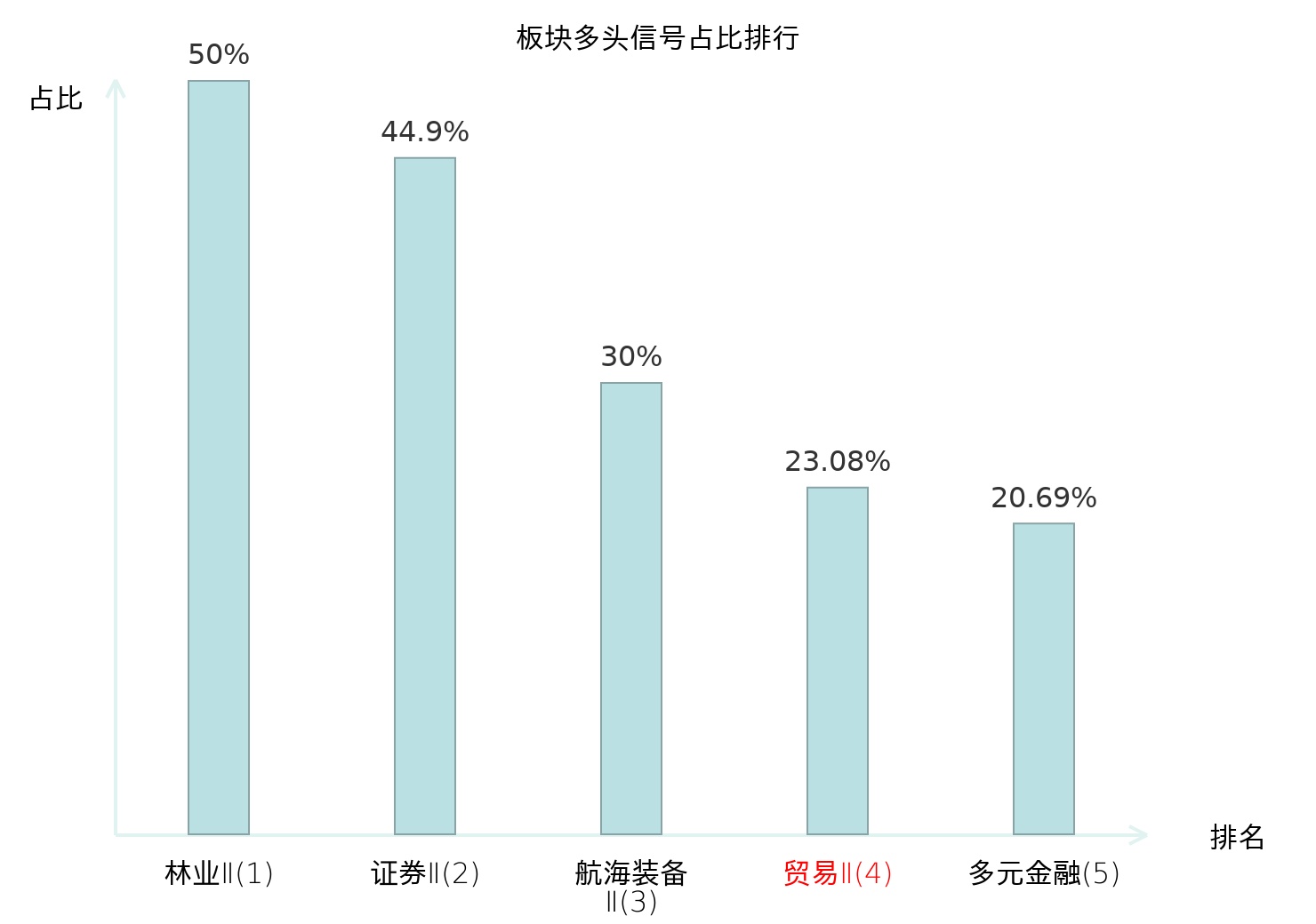 从主力宝信号数据分析,苏豪弘业所属的贸易Ⅱ板块中共有3只股票发出主力多头信号,主力多头信号占比在全行业中排名第4位,较昨日上升102位。排名的显著提升表明主力对于该板块的买入意愿增强。全市场所有行业板块中,林业Ⅱ板块的主力多头信号占比最高,位居第一。林业Ⅱ板块名次提升最快,较昨日上升125位。这些变动揭示了主力资金在不同行业间的偏好变化,为投资者提供了重要的市场趋势参考。