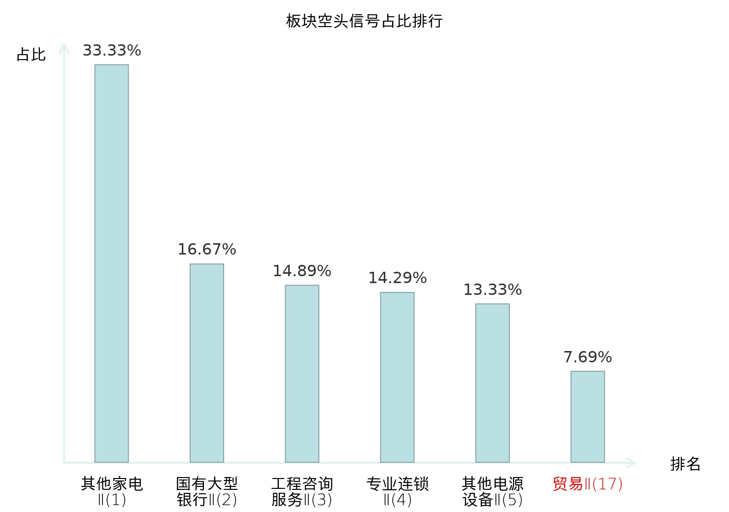 全市场所有行业板块中主力空头信号占比排名中,其他家电Ⅱ板块位居第一。光学光电子板块名次提升最快,较昨日上升117位。