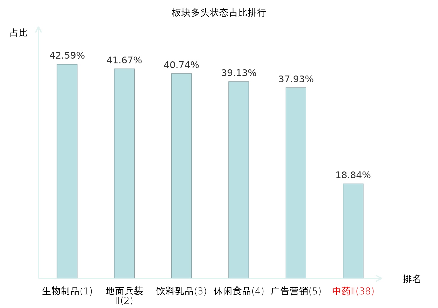 全市场所有行业板块中主力多头状态占比排名中,生物制品板块位居第一。黑色家电板块名次提升最快,较昨日上升65位。