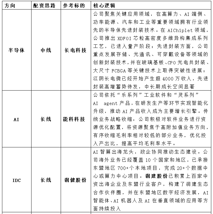 一是内外需共振下景气向上的科技成长(AI/半导体/军工等);