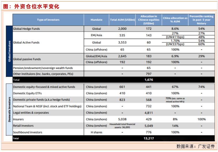 从资金角度来看,这轮上涨的主要参与资金还是机构资金,境内公募基金(含权益类与偏股混合)过去数月迅速提升股票仓位,现金比例降至5年低点。