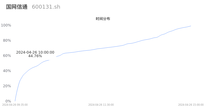 根据成交分布分析,该股票当天放量成交,成交清淡。时间上看,早盘前半小时成交量占据当天总成交量的44.76%;价格上看,成交呈现中间峰。成交分布分析主要研究股票成交的分布特性,不具有预测功能,请知悉。
