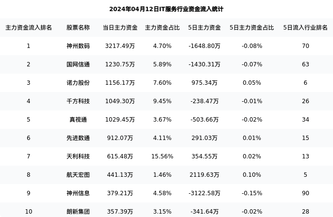 从主力资金流向来看,IT服务行业今日主力资金流入44.90亿元,在所有申万二级行业中排名:108/131。