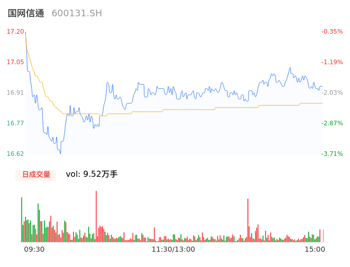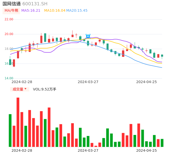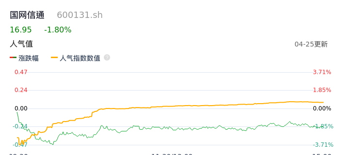 04月25日,国网信通收报16.95,股价涨幅-1.80%,成交金额1.60亿元,换手率0.80%。