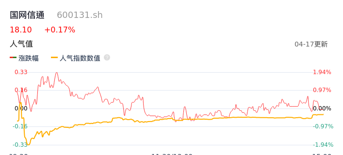 04月17日,国网信通收报18.10,股价涨幅0.17%,成交金额3.31亿元,换手率1.53%。