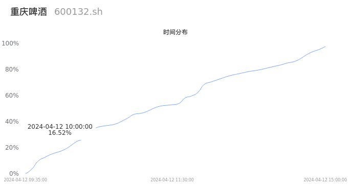 600132重庆啤酒2024年04月12日成交5.55万手,成交金额3.66亿元,相较昨日放量1.60万手,换手率1.15%,成交清淡。