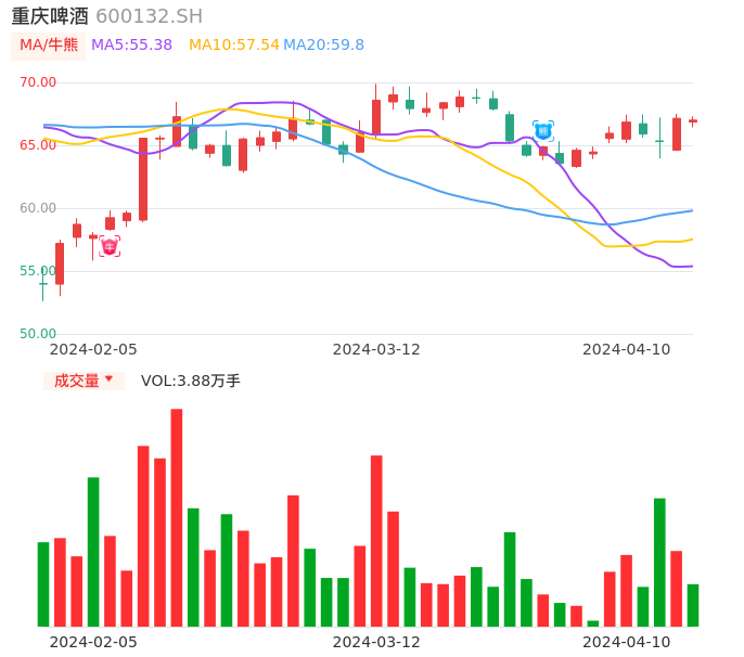 值得注意的是:2024年04月华金证券的分析师,首次发布关于重庆啤酒的研究报告,标题为:重庆啤酒(600132):主流价位贡献量增 高分红政策延续。