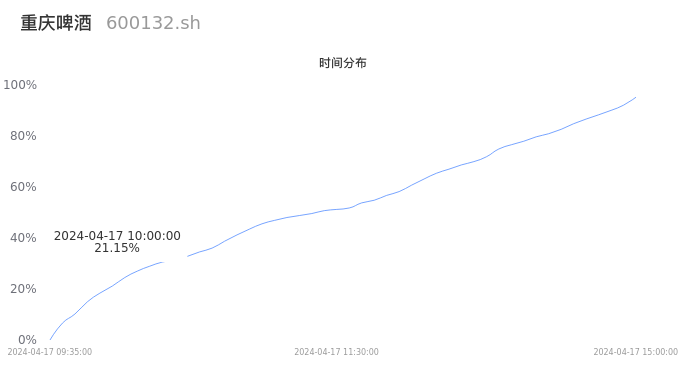 600132重庆啤酒2024年04月17日成交4.27万手,成交金额2.80亿元,相较昨日缩量6505手,换手率0.88%,成交清淡。
