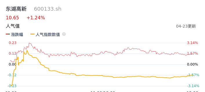 04月23日,东湖高新收报10.65,股价涨幅1.24%,成交金额3.19亿元,换手率2.79%。