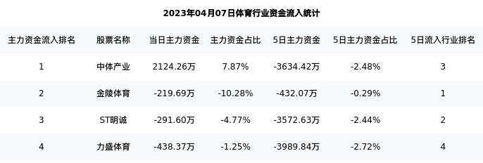 从主力资金流向来看,体育行业今日主力资金流入2.61亿元,在所有申万二级行业中排名:12/131。