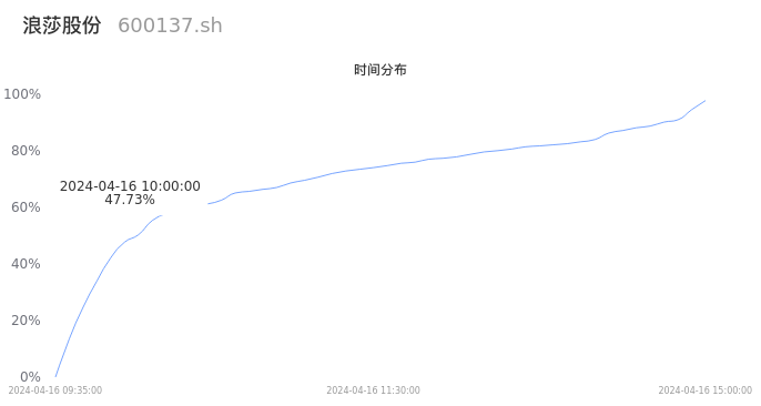 根据成交分布分析,该股票当天缩量成交,成交清淡。时间上看,早盘前半小时成交量占据当天总成交量的47.73%;价格上看,成交呈现左偏峰。成交分布分析主要研究股票成交的分布特性,不具有预测功能,请知悉。