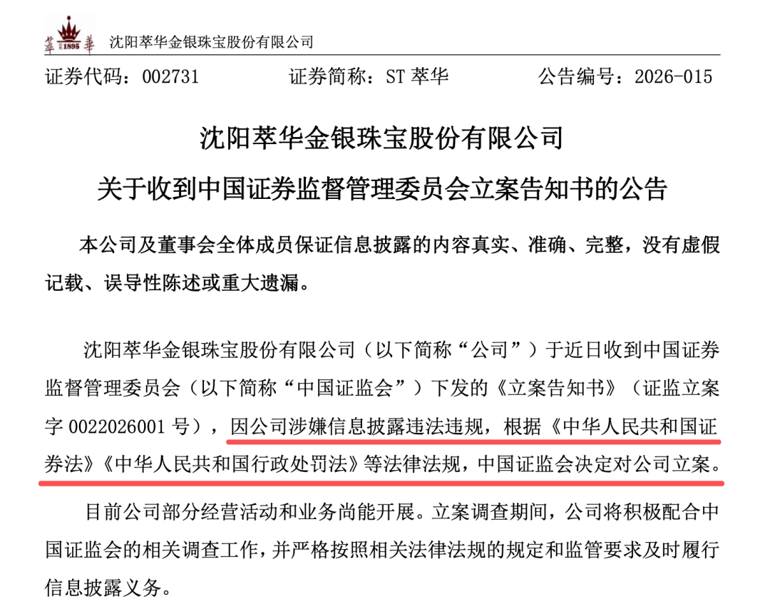 002731,遭证监会立案,明日将被实施风险警示