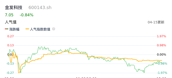 04月15日,金发科技收报7.05,股价涨幅-0.84%,成交金额1.12亿元,换手率0.61%。