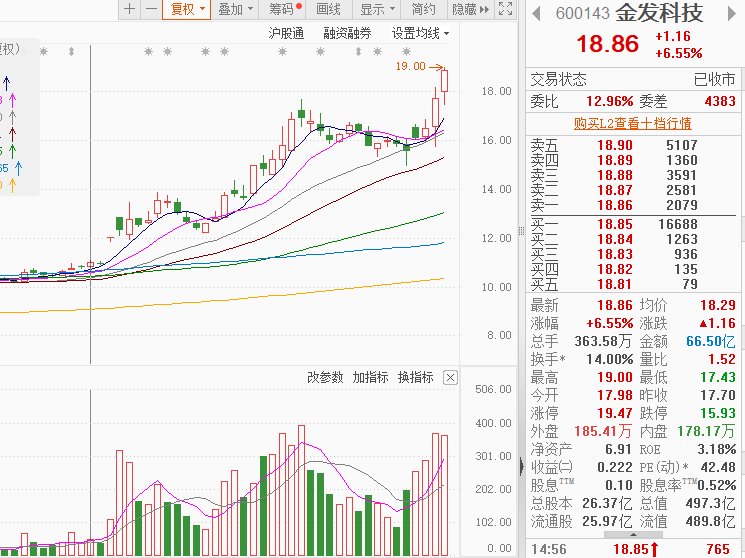 金发科技近1年业绩大增,并且集多个热点概念于一身:机器人+低空经济+新材料,股价逆势上升(优于大市),阶段性底部逐步抬高,当前股价和估值对比业绩预期处于低估区间,后市增长空间巨大,十大流通股东中有多家险资和公私募机构的身影,深受游资和主力的喜爱;市值300多亿左右易炒作;近期在“宇树科技启动IPO辅导”的刺激下(最大间接持股),快速震荡上行且放量数倍的成交额,各周期均线呈多头排列向上,股价站稳在各均线之上,技术面上金叉信号(5日MACD和10日MACD)已显现,再配和业绩预期和题材热度,股价有望进一步加速。