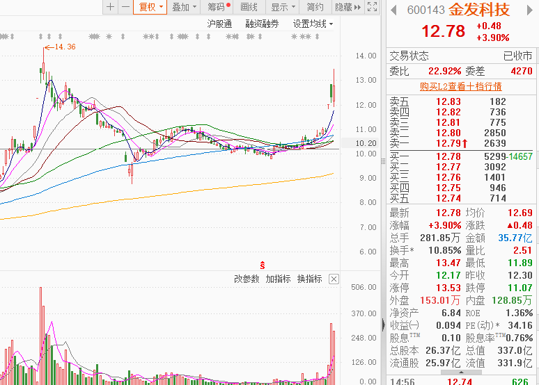 金发科技近1年业绩大增,并且集多个热点概念于一身:机器人+低空经济+新材料,股价逆势上升(优于大市),阶段性底部逐步抬高,当前股价和估值对比业绩预期处于低估区间,后市增长空间巨大,十大流通股东中有多家险资和公私募机构的身影,深受游资和主力的喜爱;市值300多亿左右易炒作;近期在“宇树科技启动IPO辅导”的刺激下(最大间接持股),快速震荡上行且放量数倍的成交额,各周期均线呈多头排列向上,股价站稳在各均线之上,技术面上金叉信号(5日MACD和10日MACD)已显现,再配和业绩预期和题材热度,股价有望进一步加速。