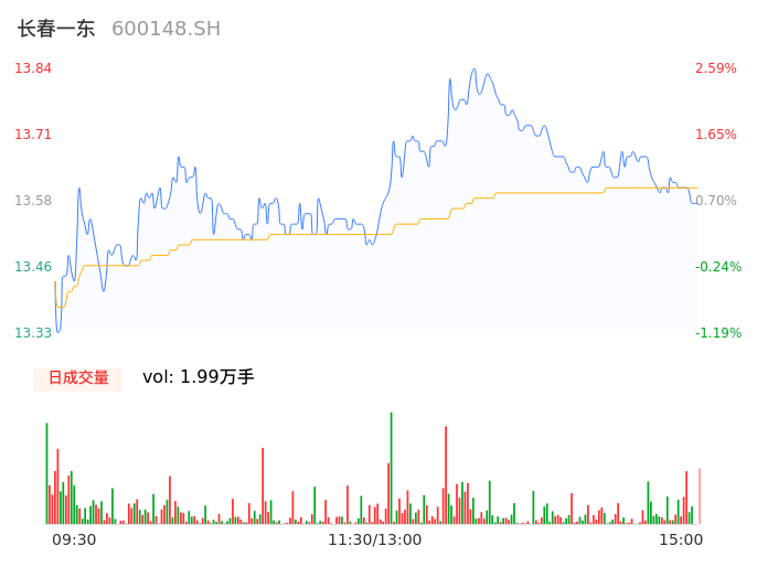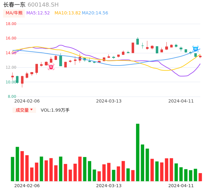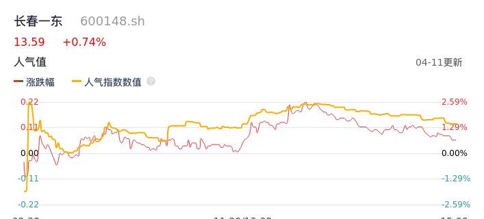 04月11日,长春一东收报13.59,股价涨幅0.74%,成交金额2708.81万元,换手率1.41%。