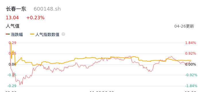 04月26日,长春一东收报13.04,股价涨幅0.23%,成交金额3240.23万元,换手率1.76%。