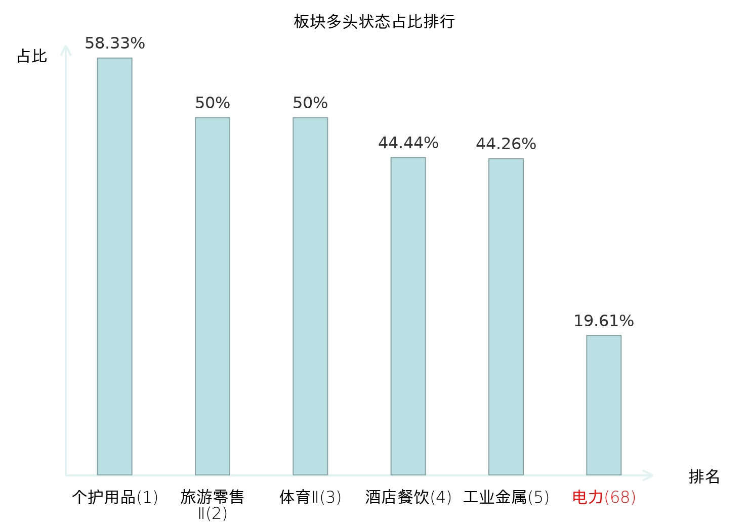 从主力宝信号数据分析,廊坊发展所属的电力板块中共有20只股票处于主力多头状态,主力多头状态占比在全行业中排名第68位,较昨日下降27位。较高的排名表明主力对于该板块整体看多意愿较强,而此次排名大幅下降可能反映了主力对该板块态度的阶段性调整。全市场所有行业板块中主力多头状态占比排名中,个护用品板块位居第一;非白酒板块名次提升最快,较昨日上升65位。这些变动揭示了主力资金在不同行业间的配置倾向变化,为投资者评估板块相对强弱及潜在结构性机会提供了客观依据。