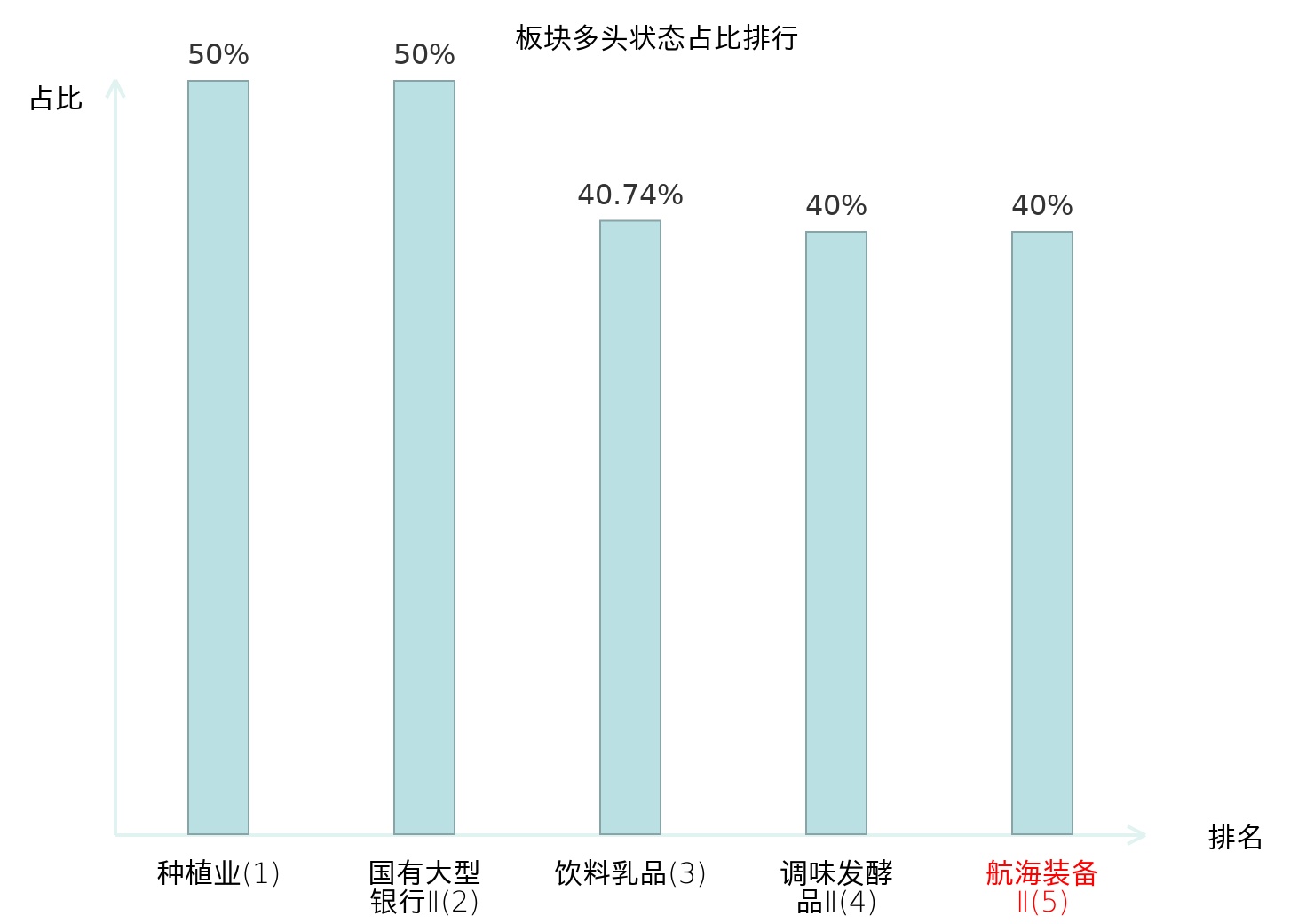全市场所有行业板块中主力多头状态占比排名中,种植业板块位居第一。冶钢原料板块名次提升最快,较昨日上升89位。