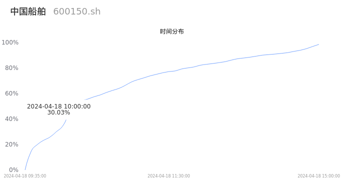600150中国船舶2024年04月18日成交59.11万手,成交金额22.83亿元,相较昨日放量12.77万手,换手率1.32%,成交清淡。