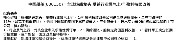 值得注意的是:2024年04月浙商证券的邱世梁/王华君/王洁若分析师,首次发布关于中国船舶的研究报告,标题为:中国船舶(600150):全球造船龙头 受益行业景气上行 盈利持续改善。