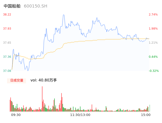 04月11日,中国船舶收报37.70,股价涨幅1.34%,成交金额15.39亿元,换手率0.91%。