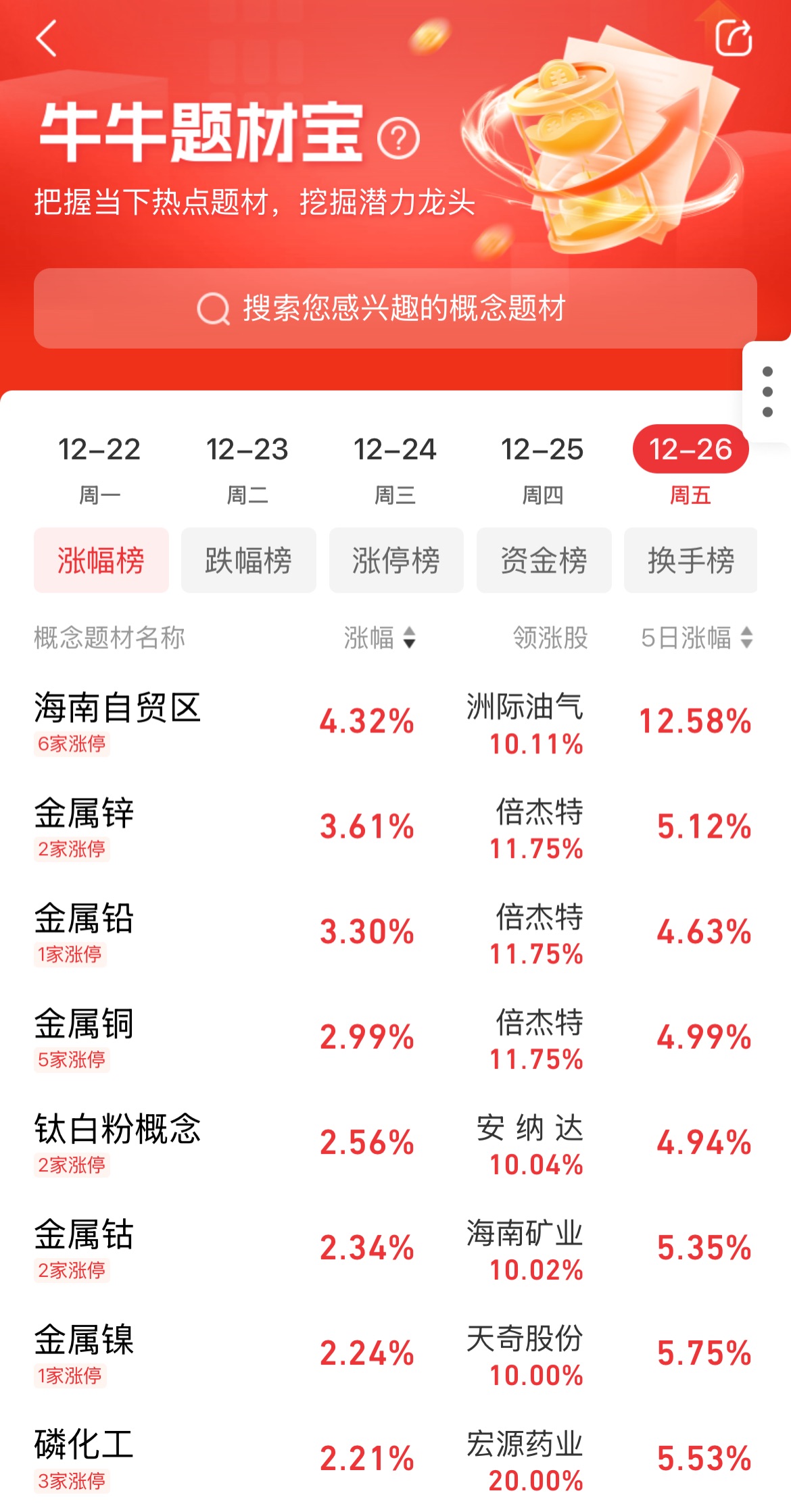 当前震荡行情,热点轮动快,一定要随时关注市场主线变化。如果投资人朋友没时间盯盘查资料,可以使用这个市场实时主线题材挖掘工具“题材宝”(点击解锁),会告诉你当前市场上的投资主线核心逻辑、领涨股、成分股资金流向信息新朋友首次购买,还可以68元立减50,首月仅需18元,点击查看详情>>