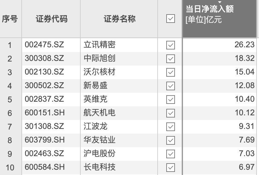 资金风向标 | 立讯精密获资金净流入26.23亿元