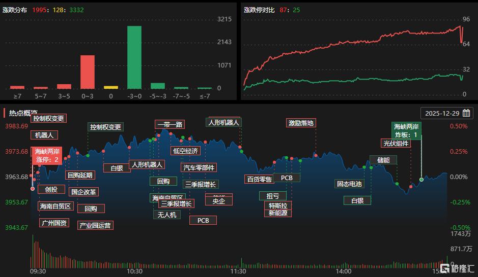 12月29日,沪指9连阳,全市场成交额2.16万亿元,较前一交易日缩量234亿元。