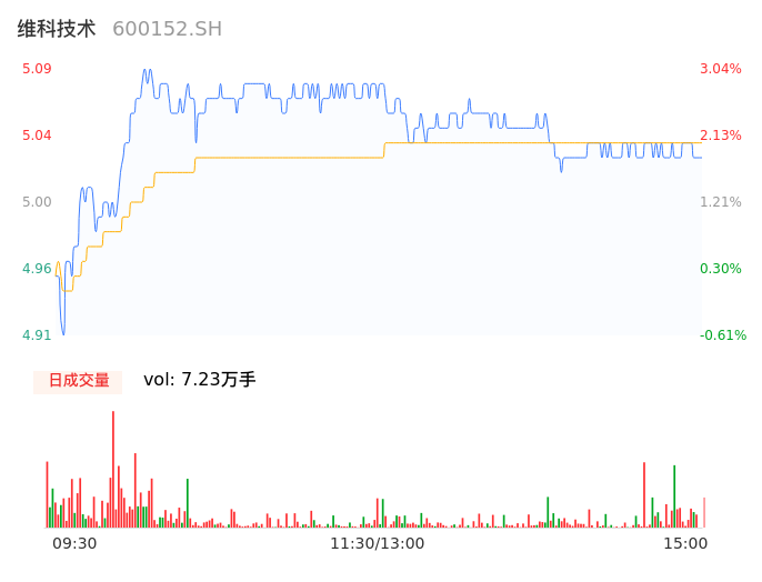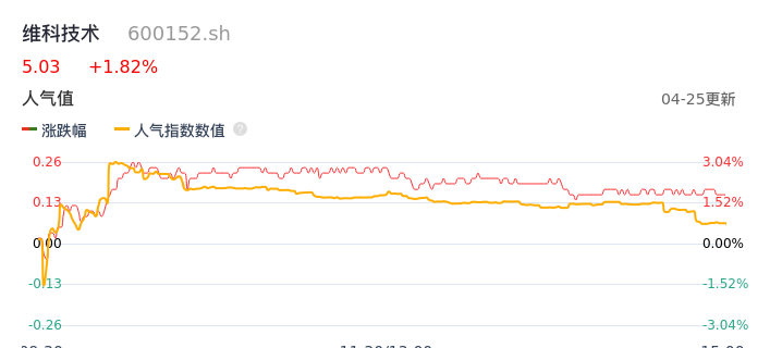 04月25日,维科技术收报5.03,股价涨幅1.82%,成交金额3643.68万元,换手率1.37%。