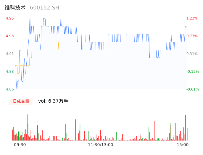 04月24日,维科技术收报4.94,股价涨幅1.02%,成交金额3133.85万元,换手率1.20%。