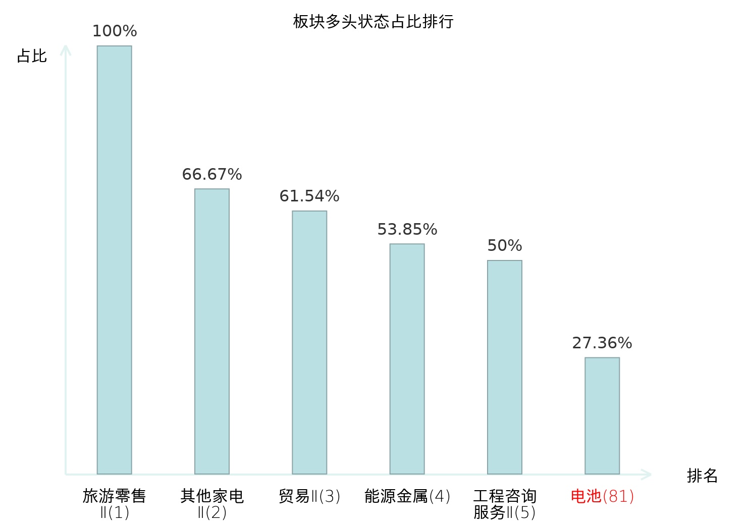 从主力宝信号数据分析,维科技术所属的电池板块中共有29只股票处于主力多头状态,主力多头状态占比在全行业中排名第81位,较昨日下降了2位。排名的下降可能反映了主力对电池板块短期内态度的微调,但仍保持较高的看多意愿。全市场所有行业板块中,旅游零售Ⅱ板块的主力多头状态占比最高,位居第一;冶钢原料板块名次提升最快,较昨日上升了37位。这些变动揭示了不同行业间主力资金动向的趋势,为投资者提供了关于市场情绪和潜在投资机会的重要线索。