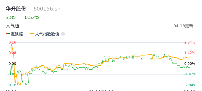 04月18日,华升股份收报3.85,股价涨幅-0.52%,成交金额5076.42万元,换手率3.28%。