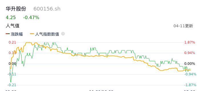 04月11日,华升股份收报4.25,股价涨幅-0.47%,成交金额6675.73万元,换手率3.87%。