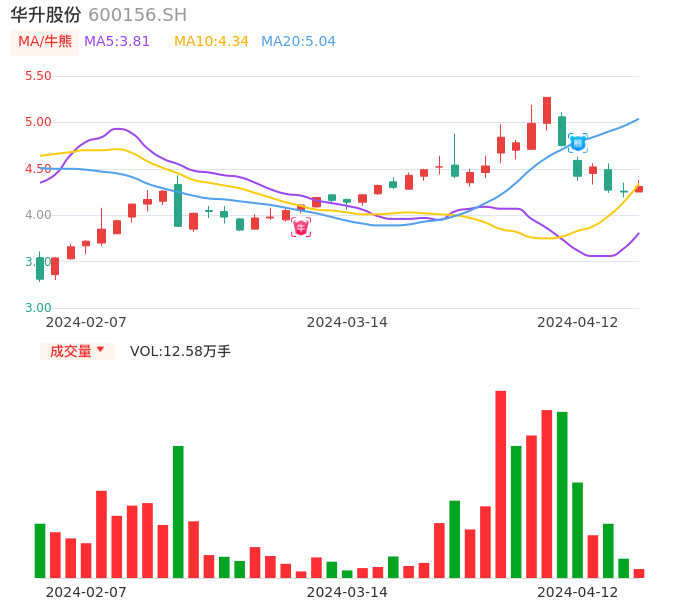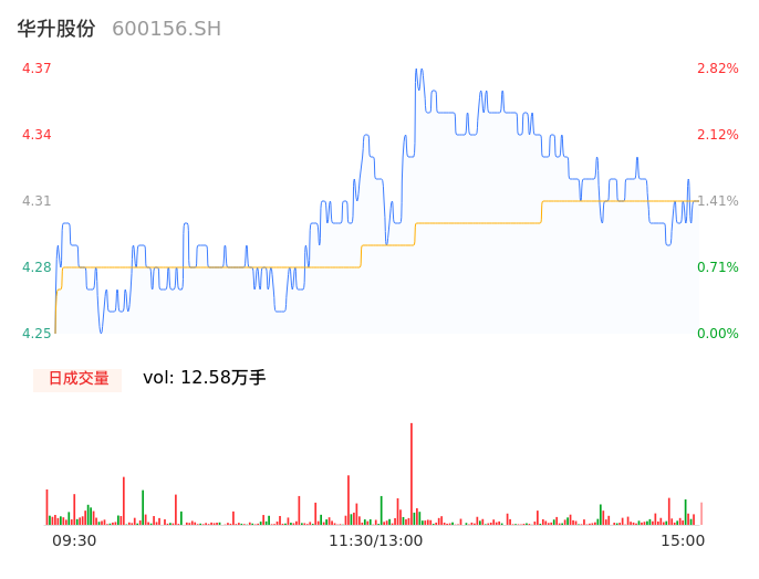 04月12日,华升股份收报4.31,股价涨幅1.41%,成交金额5416.21万元,换手率3.13%。