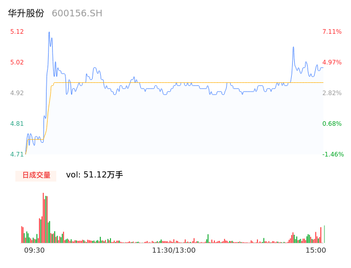 04月01日,华升股份收报4.99,股价涨幅4.39%,成交金额2.53亿元,换手率12.71%。