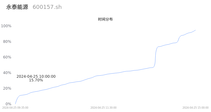 600157永泰能源2024年04月25日成交160.83万手,成交金额2.13亿元,相较昨日缩量36.54万手,换手率0.72%,成交清淡。