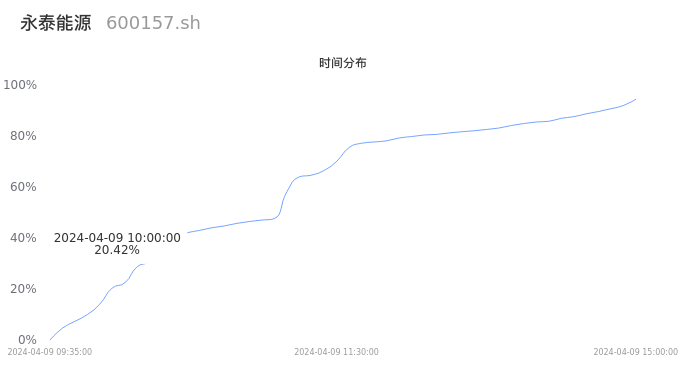 600157永泰能源2024年04月09日成交202.53万手,成交金额2.75亿元,相较昨日缩量272.24万手,换手率0.91%,成交清淡。
