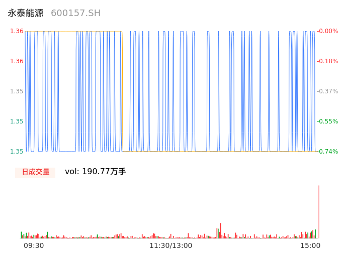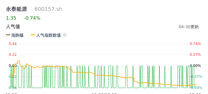 04月30日,永泰能源收报1.35,股价涨幅-0.74%,成交金额2.58亿元,换手率0.86%。