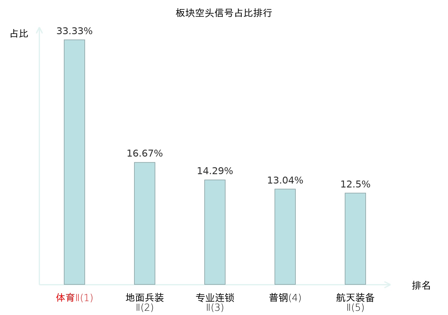 全市场所有行业板块中主力空头信号占比排名中,体育Ⅱ板块位居第一。地面兵装Ⅱ板块名次提升最快,较昨日上升108位。