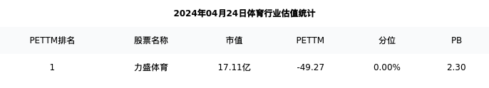 从估值角度看:中体产业最新市盈率PETTM为546.91,在行业内排名1/3,处于59.52分位。