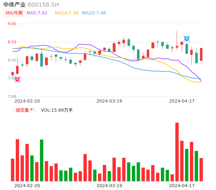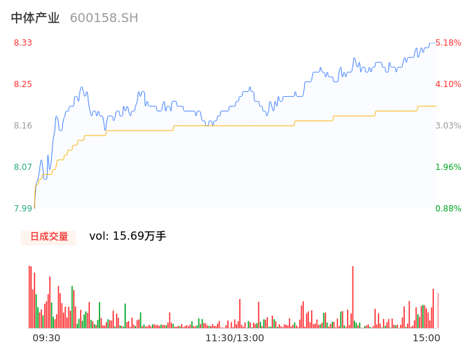 04月17日,中体产业收报8.33,股价涨幅5.18%,成交金额1.29亿元,换手率1.64%。