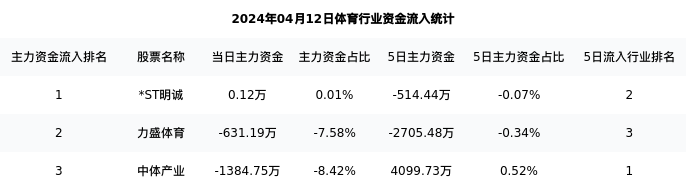 从主力资金流向来看,体育行业今日主力资金流入5509.58万元,在所有申万二级行业中排名:8/131。